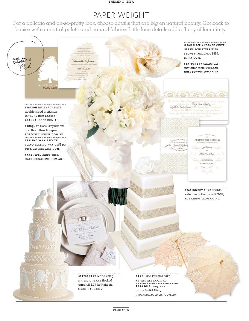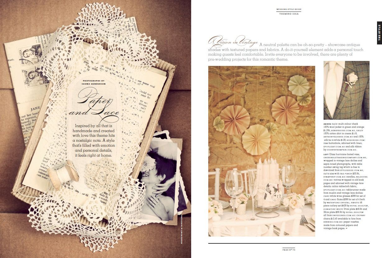 Wedding Style Guide sent me a few pages to share with you. Firstly this delightful paper and lace style theme, featuring